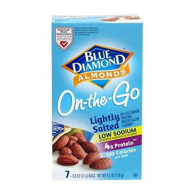 Crunchy, natural, whole almonds in an easy good to go pouch, these Blue Diamond Almonds pouches are full of delicious light salted Almonds and 4 grams of protein. These nut snacks are a satisfying snack that fills you up with fewer calories and helps with weight management as well. Great for commutes, running from meeting to meeting, or enjoying while on your next adventure, Blue Diamond lightly salted Almonds are smart snacking.