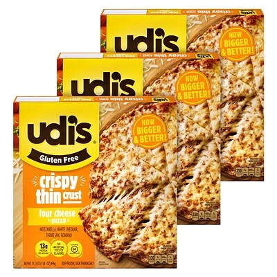A 3-count pack of Udi’s 12-inch four cheese pizza