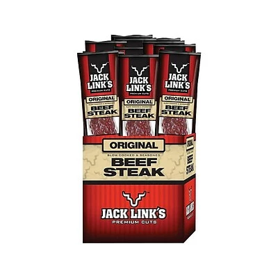 Stock the break room or home pantry with these individually packaged beef-steak strips to enjoy a high-protein, low-carb snack any time. This box includes 12 Jack Link’s original beef-steak packs made with 100-percent real beef.