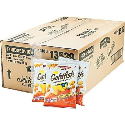 Keep your pantry or break room supplied with easy snacks with this carton of cheddar snack crackers. These Pepperidge Farm Goldfish original crackers are baked and have an iconic cheddar flavor and fish shape for a fun and tasty snack that’s great anytime.