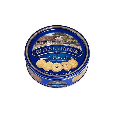 Share a classic buttery flavor with this tin of cookies. The Danish treats are made without preservatives or added colors for a traditional look and taste. This Royal Dansk cookie tin includes five cookie styles for variety.