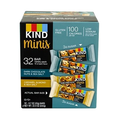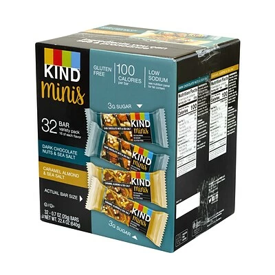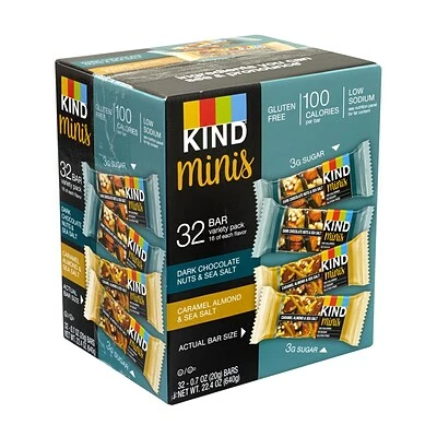 A 32 bar box of Kind Mini Nut Bars in a variety of two flavors
