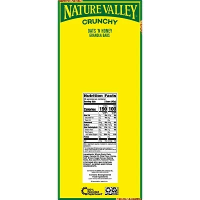 Keep your pantry or break room stocked with quick and easy snacks with this box of granola bars. Made of all-natural ingredients, these bars are a great option for before or after games, meetings, practices, and more. These Nature Valley oats-and-honey granola bars are sold in a box of 28 for convenient bulk purchasing.