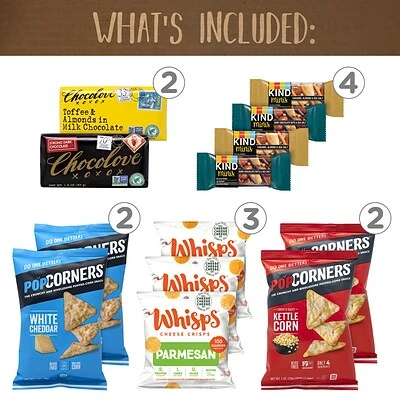 Snack brands such as Popcorners, Welch’s fruit snacks, Whisps, Smart Sweet’s, That’s It bars, Skinny dipped Almond’s, KIND bars, and Chocolove bars, there’s something for everyone! These low sugar snacks are the perfect addition to any healthy lunch or as an afternoon snack to keep you going. Less sugar doesn’t have to mean less taste, these snacks are packed with flavors and nutrients! Grab a box for your office, desk or to keep in your pantry at home!