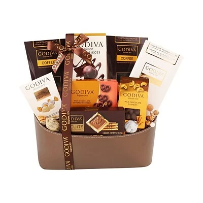 The Ultimate Godiva gift showcases the rich and decadent flavors of one of the world’s most famous and indulgent chocolatiers. Each taste of melt-in-your-mouth chocolate will guide your taste buds to delight. Enjoy a luxurious assortment of Godiva chocolate truffle coffee, Godiva milk chocolate-covered pretzels, Godiva assorted truffles, Godiva hot cocoa, and more.