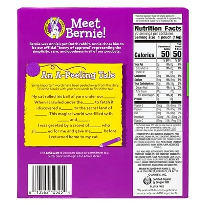 Swirl it, twirl it, bend it and whirl it! This variety pack of Annieβs Organic Swirly Strawberry and Bendy Berry Fruit Tape will turn snack time into delicious fun. No artificial flavors, synthetic colors or high-fructose corn syrup here β just deliciously juicy bites of vegan and gluten free goodness. Thatβs right, this playful take on snack time is the real, certified organic deal. Peel open a roll and watch the fruity fun unwind. Go ahead, play with your food. Annie Withey believed it was possible to build a socially conscious & successful business. This was her mission in 1989 when she wrote her name, address, and phone number on the very first boxes of Annieβs Mac & Cheese. Her legacy lives on as Annieβs strives to change the future for our kids, starting with food. Annieβs, now based in Berkeley, CA, believes that food is the most powerful force for change we have, and that each generation owes it to the next to leave the planet better than we found it. This is why they make their products with integrity, invest in organic and regenerative farming practices, and always consider people, planet, and their bunny footprint with all that they do. Best known for their delicious mac & cheese and bunny-shaped snacks, Annieβs makes yummy products in over 20 family-friendly categories β spanning from fruit snacks to cereal to bars, plus a variety of gluten-free and vegan products for their friends with special diets. But Annieβs is truly more than just food. Annieβs is a purpose driven brand who believes that together, we can leave behind a healthier planet for our kids