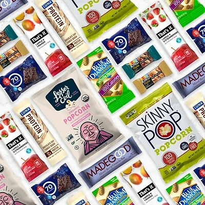 Looking to cut calories or snack healthier? This box has you covered! With brands like Skinny Pop, Lesser Evil, Luna, KIND, Fiber One, Made Good, Blue Diamond, and THAT’S IT. A wide range for everyone to enjoy and snacks to satisfy every preference. Low calorie doesn’t have to mean low on flavor; with brownies, bars, popcorn, and nuts there’s flavor for days! Grab a box and stock your pantry, office or break room.