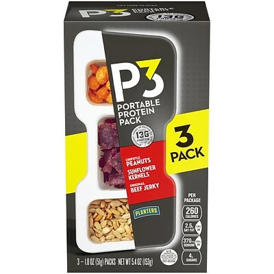 Protein snacks help keep you active and going strong, but some protein snacks are over-processed with added protein and just don’t taste good. Planters P3 combines fresh roasted nuts, premium-cut lean jerky, and tasty seeds for a delicious snack that delivers an excellent source of protein.