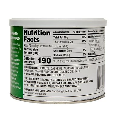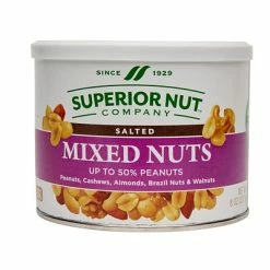 Nuts are high in protein, and an excellent source of Fiber. These are great for office, home or break-room snacking and for any snack bowl. Superior Nut Mixed Nuts are the perfect on-the-go snack to curb your cravings.