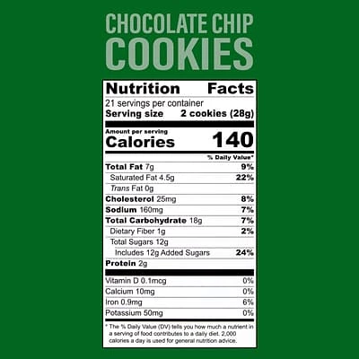 Includes 21-oz. chocolate chip cookies